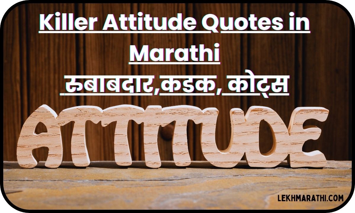 Attitude Quotes in Marathi- प्रत्येकाच्या आयुष्यात असे काही प्रसंग येतात जे मनाला त्रास देतात आपल्याला दुखी करून टाकतात. तेव्हा आपल्याला attitude खूप गरज पडत असते. Attitude म्हणजे आपला आत्मविश्वास. स्वत:चा स्वत:ला पाहण्याचा एक वेगळा दृष्टिकोण असतो.यातून आपल्यात सकारात्मक गोष्टी अनुभवायला मिळतात. रुबाबदार Attitude, कडक Attitude आणि जबरदस्त Attitude कोट्स,स्टेटस, विचार आपल्याा विचारांना प्रेरणा देतात.